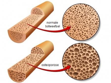 Een laag lichaamsgewicht heeft een negatieve invloed op de botopbouw, door het te lage lichaamsgewicht heeft uw lichaam niet genoeg grondstoffen om de botopbouw te stimuleren en te blijven ondehouden. Door het te lage lichaamsgewicht ondervinden je botten te weinig druk. Je botten hebben namelijk een positieve druk nodig om sterker te kunnen worden. Een te laag lichaamsgewicht kan leiden tot Osteoporose (zie afbeelding hieronder)